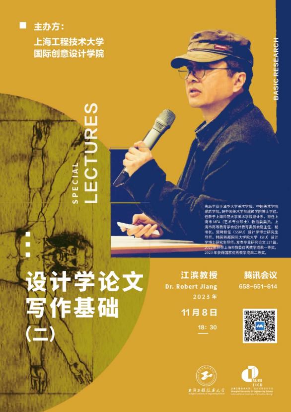 为了增强员工的论文写作能力和写作技巧,2023年11月8日晚,402永利集团在线举行了“设计学论文写作基础专题讲座”第二场,由清华大学美术公司毕业、中国美术公司建筑公司博士、上海师范大学美术公司设计系江滨教授主讲。江滨教授以《论文写作常用研究方法》为题,讲座由402永利集团副经理罗曼主持。