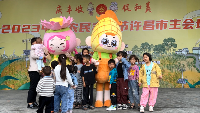 After two months of experience, teachers and students from the International Institute of Creative Design have completed a complete set of creative designs through demand analysis, on-site research, scheme formulation, scheme evaluation, and scheme adjustment. With the concept of agricultural revitalization and innovation, they have showcased the vitality of Xuchang's agriculture. At the event site, not only were there lively performances of gongs and drums, folk dances, and classic Henan Opera songs, but also multiple different display areas were set up according to the actual situation of Xuchang City, allowing visitors to fully experience the development of agriculture and the joy of harvest. The two harvest festival themed mascots designed by the college - Maize Boy and Lotus Sister - are deeply loved by the on-site personnel. They represent Henan Agriculture and Liancheng Xuchang respectively, and also reflect the theme of celebrating harvest and promoting harmony and beauty of this year's Chinese Farmers' Harvest Festival.
