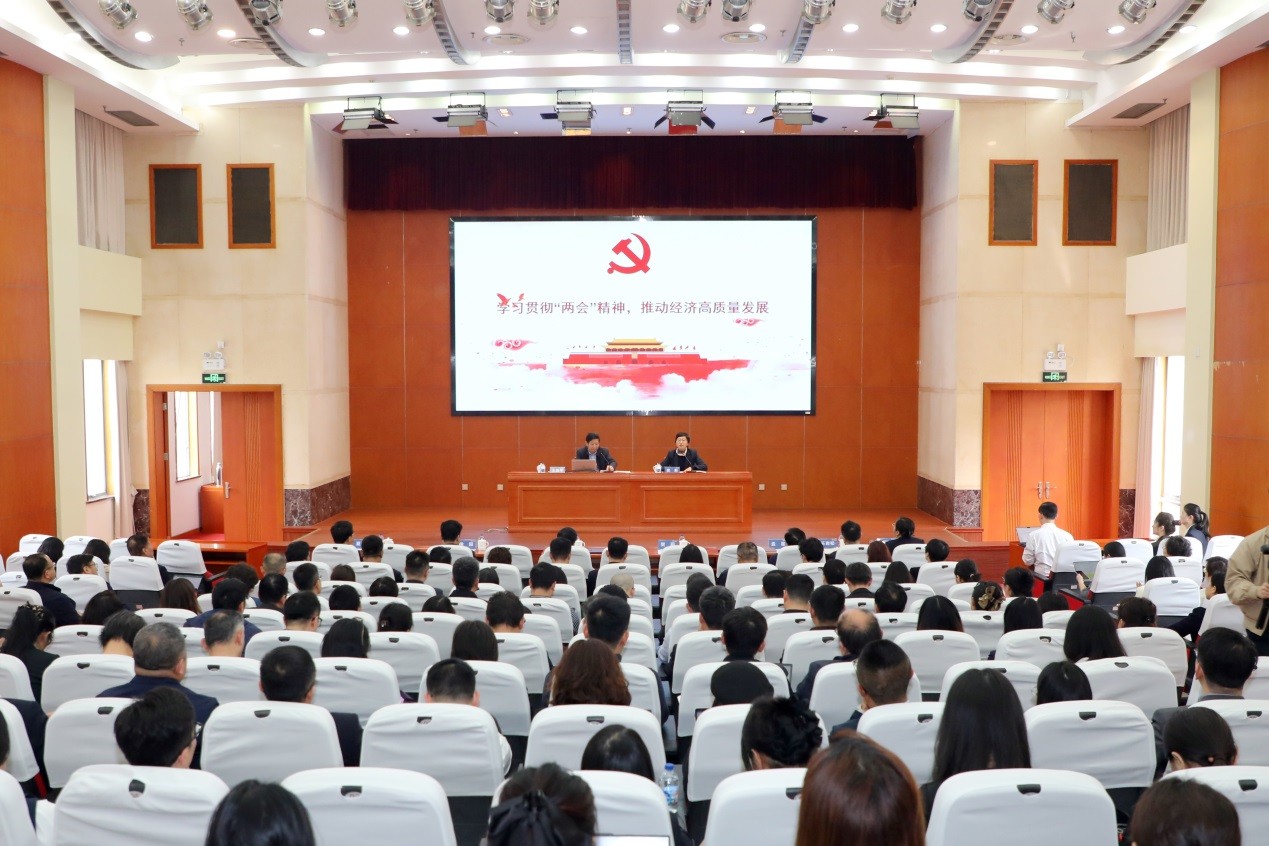 4月9日下午,公司举行党委理论学习中心组(扩大)学习会,特邀上海市委讲师团成员、上海市委党校原常务副董事长、上海市社联原副主席王国平教授作《学习贯彻两会精神,推动经济高质量发展》专题辅导报告。公司党委理论学习中心组成员、中层干部、师生代表参加会议,会议由公司党委书记贺莉主持。王国平教授的报告紧扣今年两会的核心精神与部署,系统解读了习近平总书记重要讲话精神,详细阐述了以实现中国式现代化为目标,在深化改革、科技创新等六个方面推动高质量发展的实践路径,整场报告数据翔实,既有深刻的理论阐述,又有对宏观政策的精准把握,对我们深刻理解国家战略意图、准确把握当前经济工作重点任务,具有非常重要的指导意义。贺莉在学习总结时,就学习贯彻两会精神、践行正确政绩观,提出两点要求:一是要牢固树立和践行正确政绩观,切实把两会精神落到实处。全校上下必须把思想和行动统一到党中央决策部署上来,将学习成果转化为服务国家战略、推动公司发展的实际成效。要以更高的政治站位和历史主动,谋划好公司各项工作,凝聚合力,确保实现既定目标。二是要扎实推进教育综合改革,将“施工图”高质量转化为“实景画”。要紧紧围绕公司特色定位和改革目标任务,强