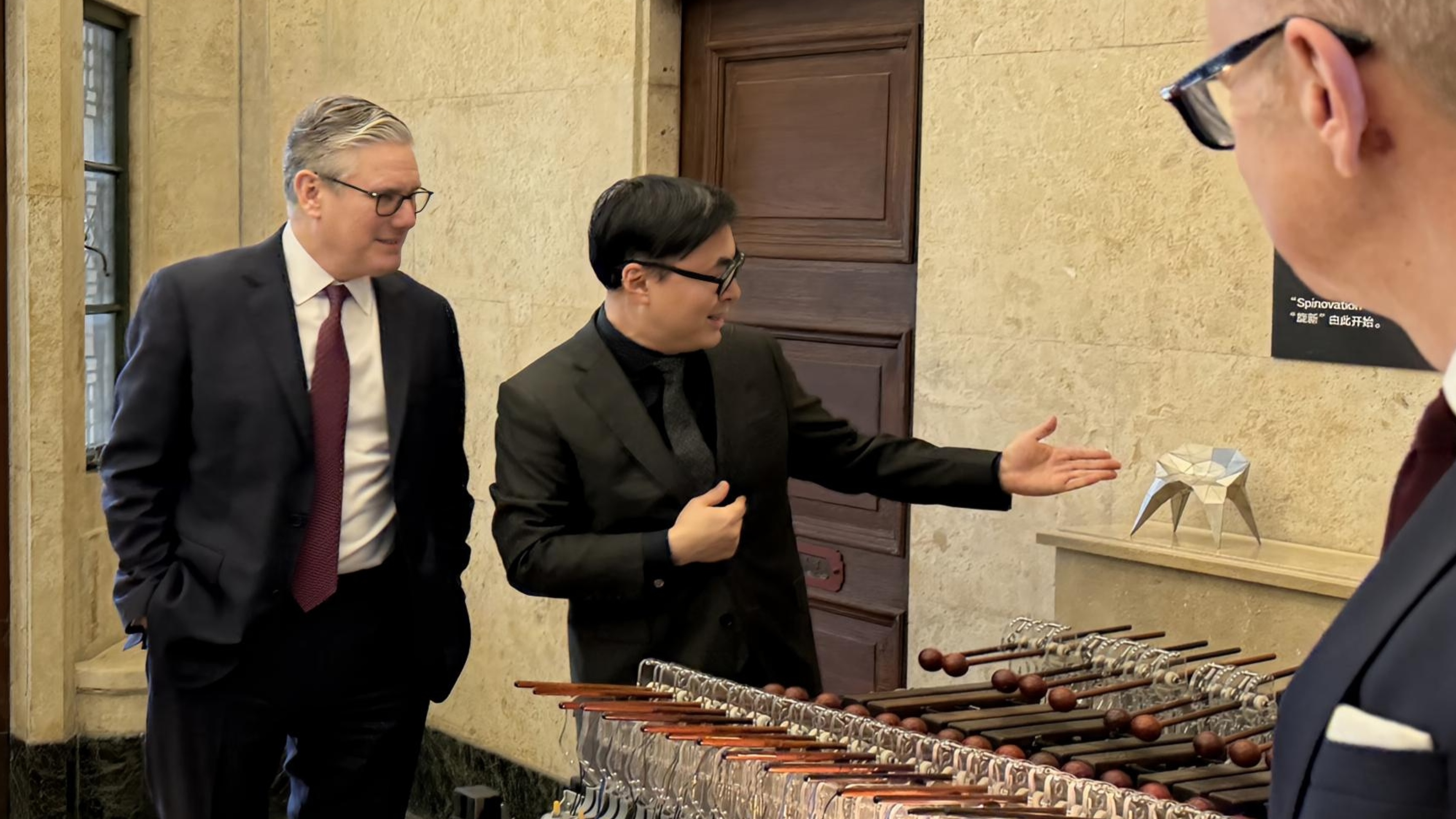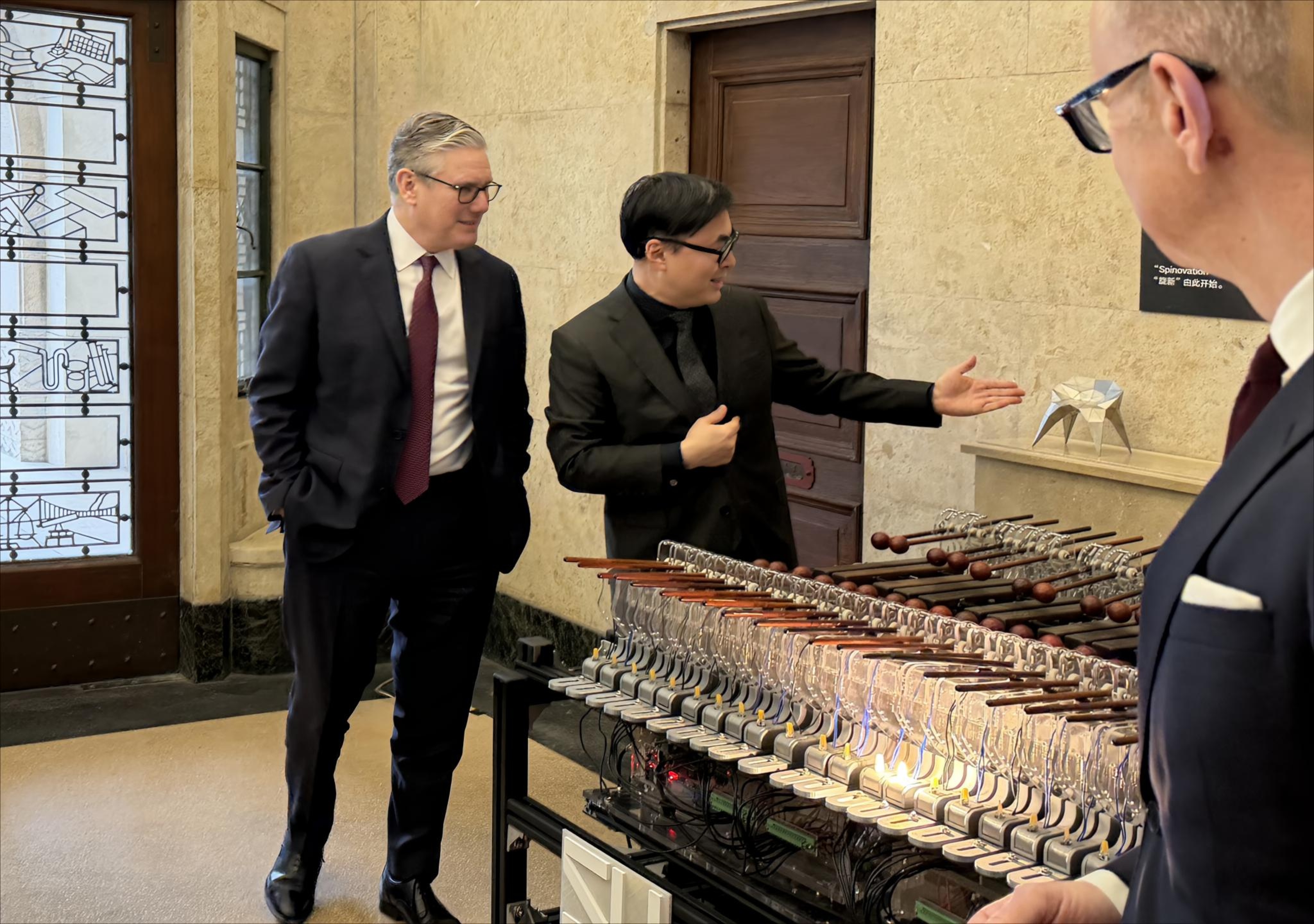 正在上海访问的英国首相斯塔默,今天(1月31日)上午来到雷士德工公司旧址,参访公司上工程-DIIS联合创新中心。娄永琪董事长向斯塔默首相介绍了402永利集团正在和上海创新创意设计研究院一起在北外滩打造“具有全球影响力的创新转化引擎”和创意、创新和创业社群。娄永琪演示了由公司陈俊恺副教授主持的“新技实验室”研发的自动化木琴乐器装置——《和鸣》,它将自动化乐器的互动演奏与算法编曲融为一体。陈俊恺团队正在基于上工程师生在“新技实验室”的跨学科创新,打造一支由AI驱动智能乐器实现人机共协演奏的乐队,并拟于2026年9月首演。参访期间,斯塔默还与来自英国皇家莎士比亚剧团、英国国家剧院的演职人员以及上海两所中学的员工进行了互动。临别,娄永琪还向斯塔默赠送了2022-2023WDCC世界设计之都大会主题展的作品集。2025年底,公司分别与虹口区人民政府及上海创新创意设计研究院签订战略合作协议,通过共建联合实验室、联合研究中心等,在北外滩打造世界级的设计驱动型创新枢纽,服务上海“全球科创中心”与“世界设计之都”建设及经济高质量发展。并计划在此基础上推进创新成果向周边区域辐射,助力北外滩科创街区建设,推