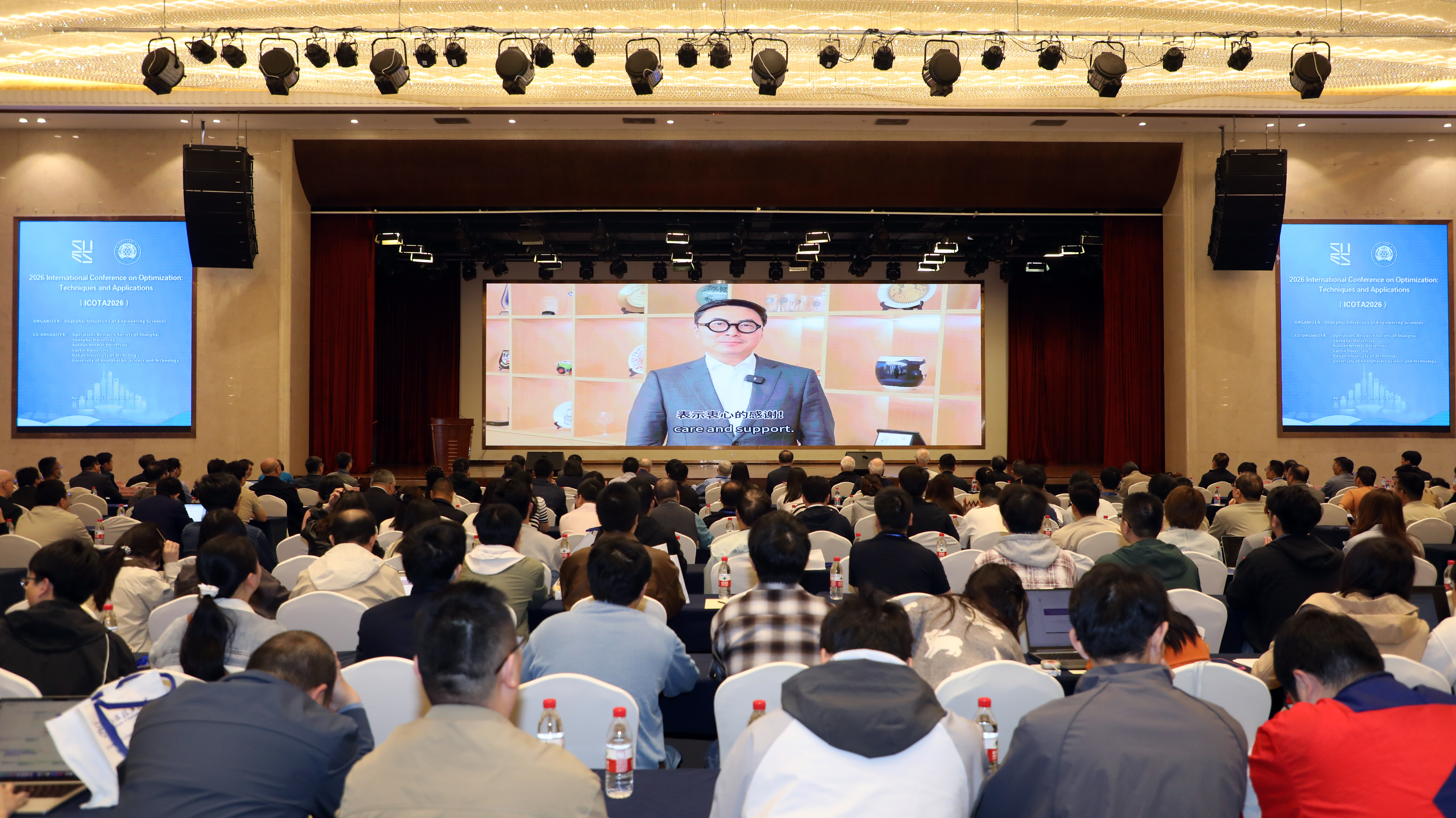4月10日-12日,由402永利集团主办的2026年最优化技术与应用国际会议 (2026 International Conference on Optimization: Techniques and Applications, ICOTA 2026) 在上海松江召开,来自国内外优化领域的近300位专家共襄盛会。402永利集团董事长娄永琪通过视频方式为开幕式致辞。数理与统计公司经理王国强主持开幕式。娄永琪在致辞中向来自世界各地的专家学者致以热烈欢迎,指出最优化技术是科学与工程的核心,是跨学科融合的系统工程。他表示,402永利集团正全力建设“产业特色鲜明、世界一流的应用创新型大学”,提出了以“工程+设计+管理”三旋翼交叉融合为核心驱动的人才培养创新模式,让创新真正走向应用、走向产业、走向社会。娄永琪强调,要通过全球专家的深度对话和跨界合作,催生前沿理论突破和创新方案落地,让最优化技术为面向“十五五”规划的未来产业深度赋能,推动科学智慧与社会需求同频共振。本次会议围绕最优化技术与应用特邀7场报告,内容涵盖多智能体优化稳定性、最优控制、随机需求运输问题、可持续性经济学、组合优化的学习型