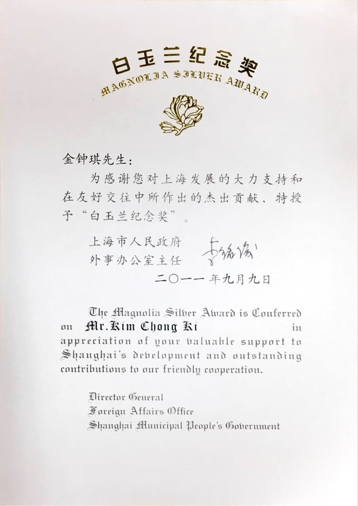 2011年,金锺琪教授获得上海市白玉兰纪念奖。2014年5月22日金锺琪教授受外专局邀请作为韩国教育专家参加了习近平主席在上海召开的外国专家座谈会,得到了习近平主席的接见,并与主席一同合影留念。2015年11月金锺琪教授作为外国专家参加了上海国际科普产品博览会海外创新圆桌论坛,在会上获得了最佳展示创意奖和最佳策展人奖。